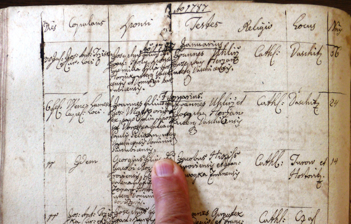 1787 február 2-án házasságot kötött Joannes, a …lin-i illetőségű Josephus Wlczek fia és Dorothea a pardubicei uradalomhoz tartozó Dašice-i illetőségű Paulus Pelikan lánya. |