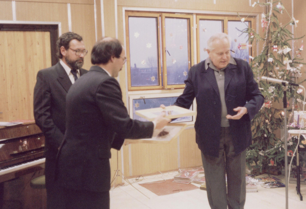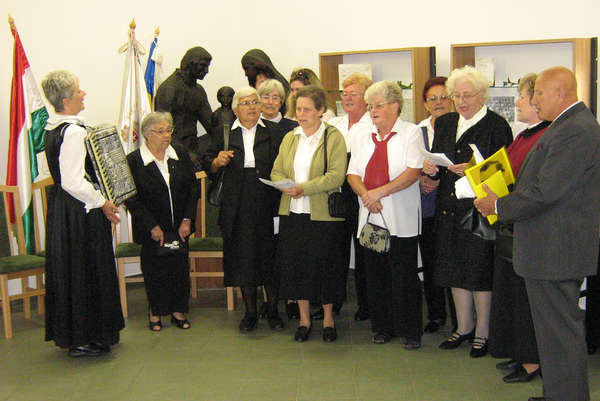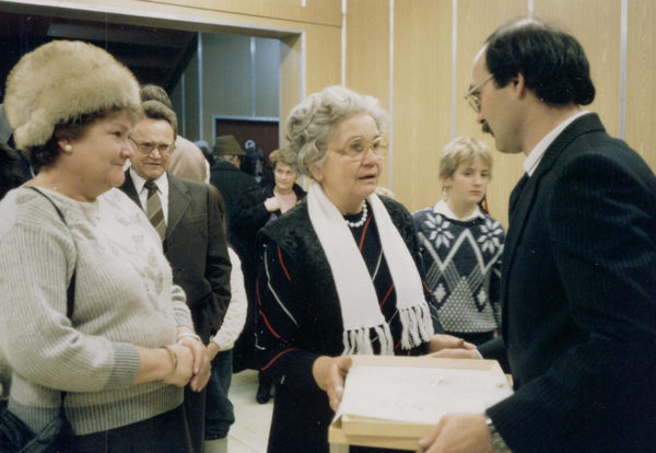 az emlékek átadása, (Vilcsek Irén, Wilczek Jolán, Álmos László ig.)