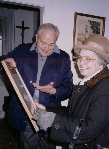 Az iskolai ünnepség előtt a plébánián, Joli néni, testvére Irén, (Vilcsek Irén) és Sándor atya (dr. Major Sándor plébános úr) közösen megtekintették az iskolának átadásra szánt tárgyi emlékeket.