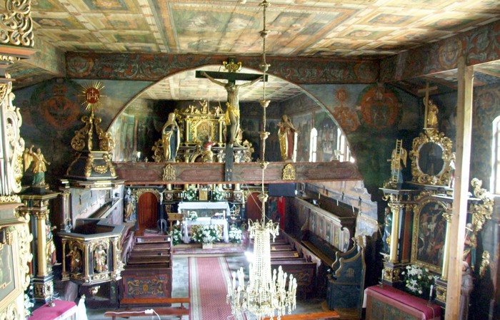 Szükség törvényt bont alapon, kiszakítva magam a soknyelvű (lengyel, orosz, szlovák, német, angol) társalgásból, helyi információ segítségével felkeresem a külön, másik faházban, kifejezetten nagyon kulturáltan, elegánsan kialakított mellékhelyiséget. Jelentős megkönnyebbüléssel tértem vissza a többiekhez, akik közben már szedelőzködtek. Elbúcsúztunk a skanzen barátságos vezetőitől. Az udvaron még egy-két fotót készítettünk, aztán irány a Felső-Zubrzicai plébánia.